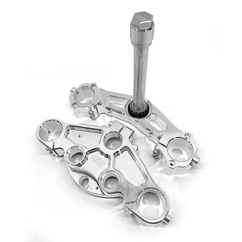Both style triple tree sets are compatible with stock or performance upgraded suspension components.