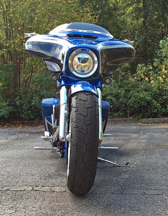These new HHI Road Hawg™Wide Tire Kits allow you to install a 180mm tire up front that creates a truly exciting Front Wide Tire Bike upgrade while integrating with your stock 180mm rear tire perfectly.