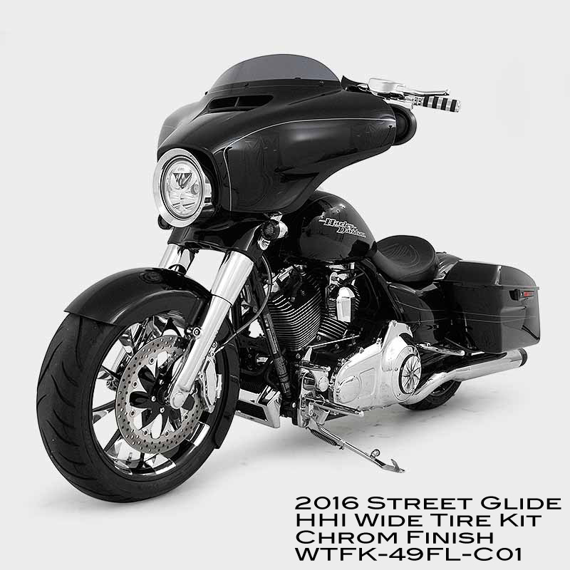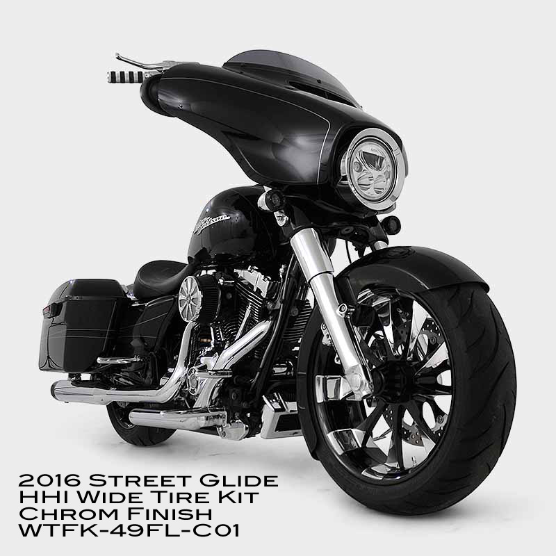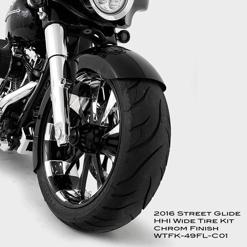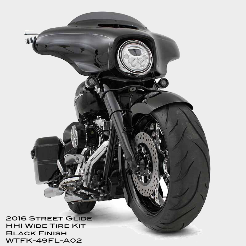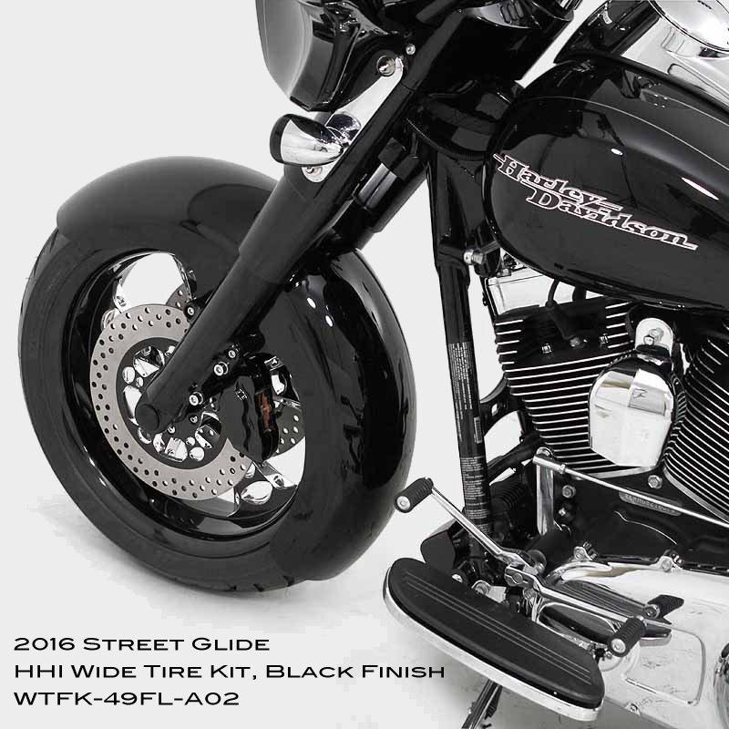 For more details on fitting the Road Hawg™  HHI  Front Wide Tire Kits, please call 1-877-442-5837 or  email sales@hawghalters.com.