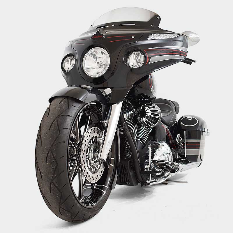 HHI now offers a complete selection of HHI / Renegade Custom Wheel designs in the 21 x 5.5 size to fit Indian touring models. These wheels come with either dual or single brake hub assemblies, ready to install with the correct 180mm tire mounted and balanced.