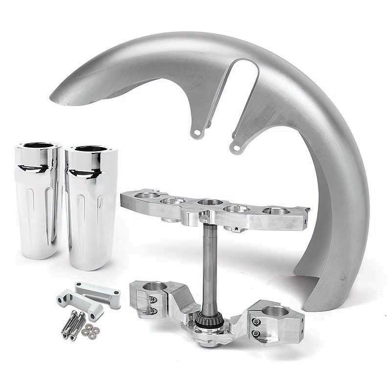 For models with fork covers, the kit must be ordered with our custom-designed billet fork covers available in black, chrome or raw finish.