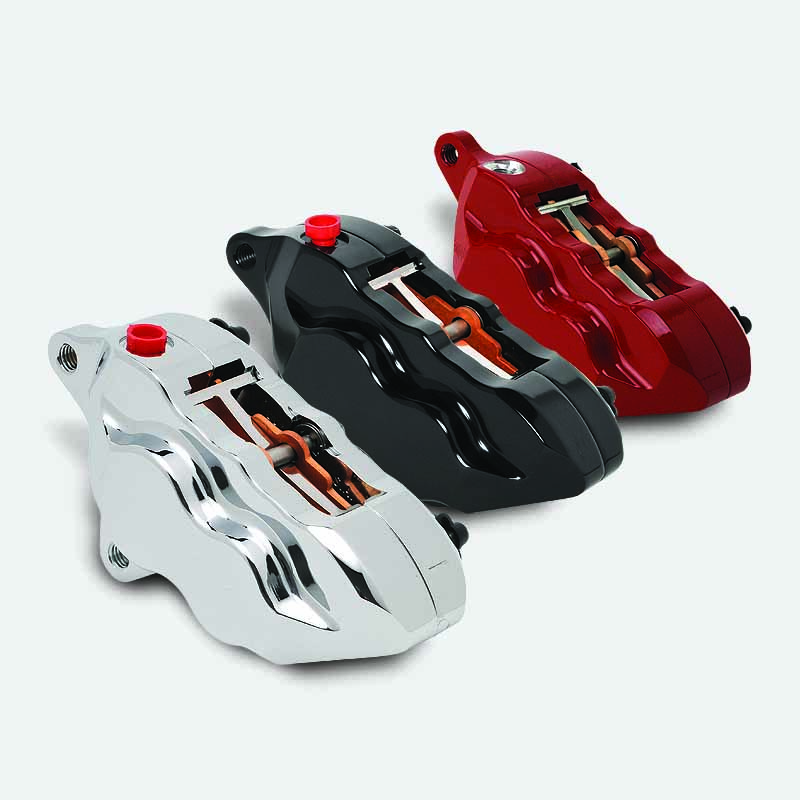 Manufactured from 6061 billet aluminum, all of our front calipers are a direct bolt-on for 1984 and up models except the Springer. Billet aluminum has better strength to weight ratio compared to cast aluminum and direct bolt-on provides the most rigid and cleanest attachment method of mounting.