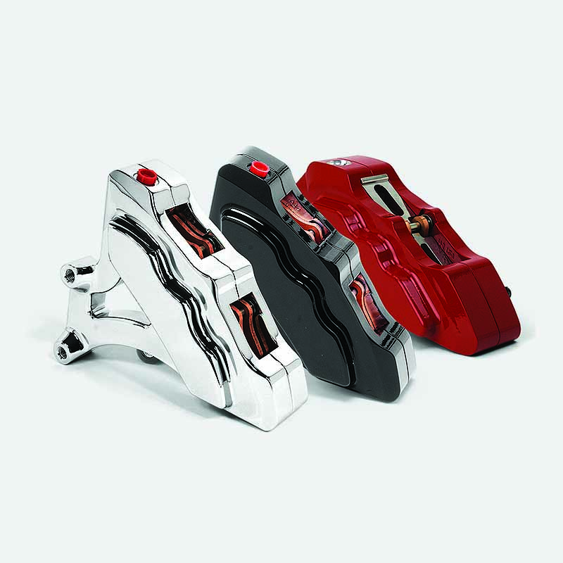 The BFC-18 caliper is available in, Polished, Chrome, Black, Aztec Red, Inca Gold & Cobalt Blue Anodized finishes.