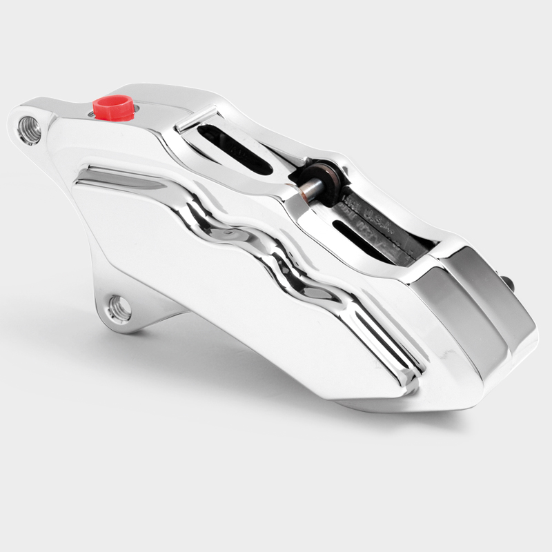 Manufactured from 6061 billet aluminum, all of our front calipers are a direct bolt-on for 1984 and up models except the Springer and 1984-99 narrow glide models with wire wheels. Billet aluminum has better strength to weight ratio compared to cast aluminum and direct bolt-on provides the most rigid and cleanest attachment method of mounting.