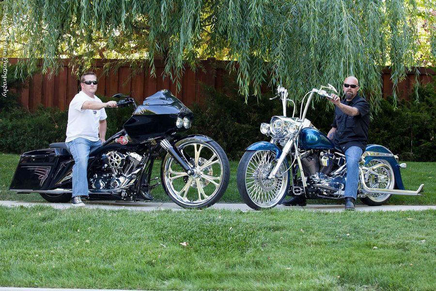 Build #18 The above Road Glide has HHI 26" Builders Kit and 6 piston caliper. The Softail has HHI 4 degree Fatboy trees. Photo sent in by HHI customer Wayne Brown.June 2012