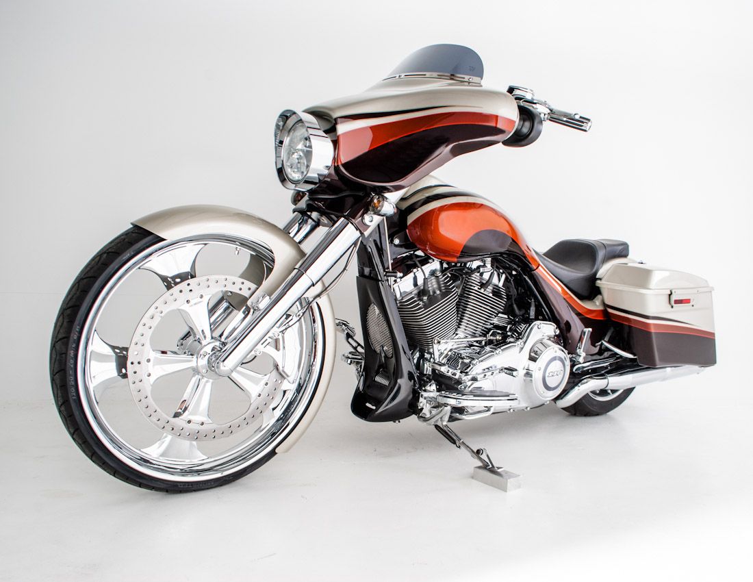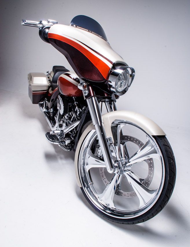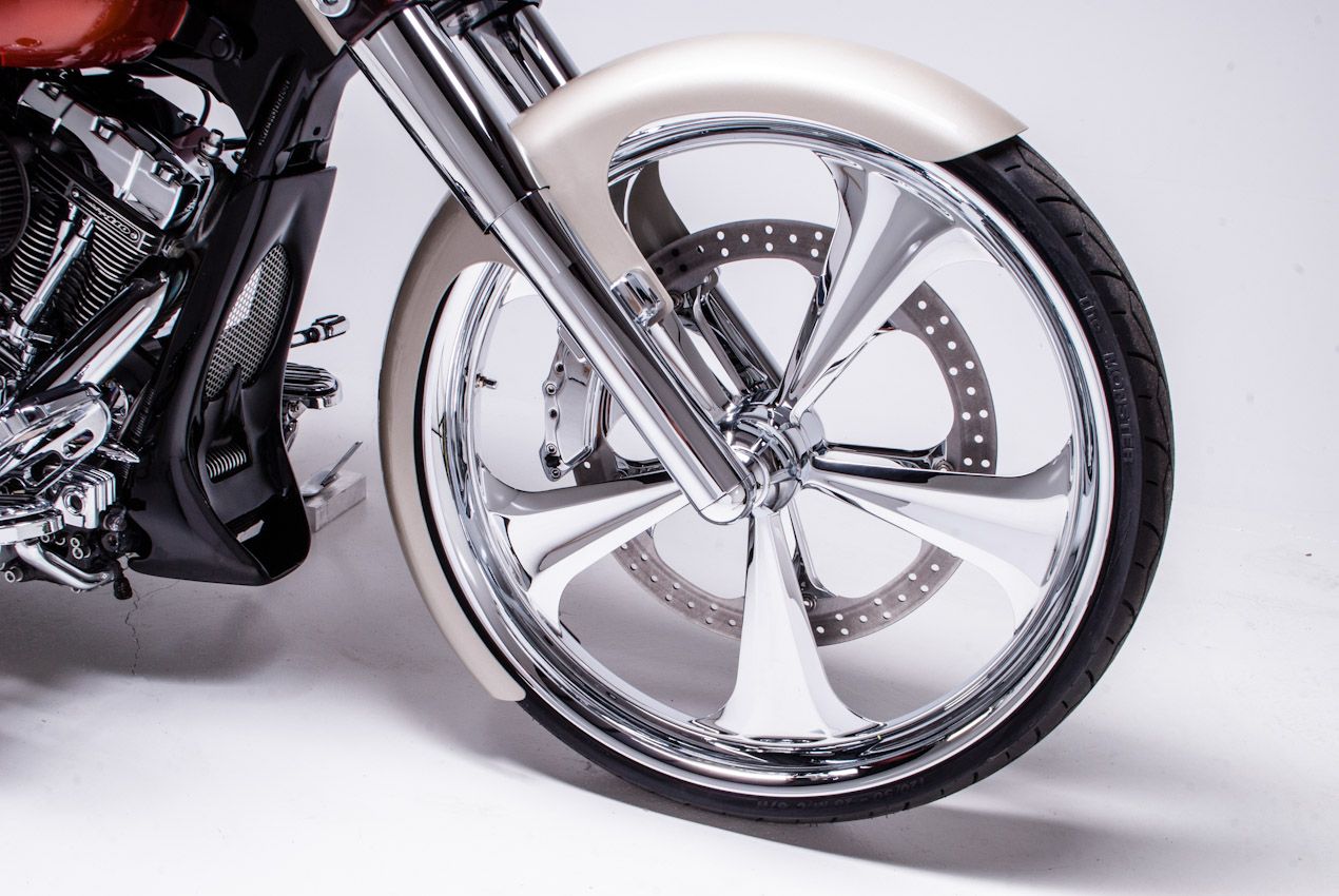Build #35 2012 Street Glide Screaming Eagle 26" Wheel, HHI 12" Reaper Bars, HHI BFBK 6 piston caliper and true floating rotor kit. Click Here to purchase kit.