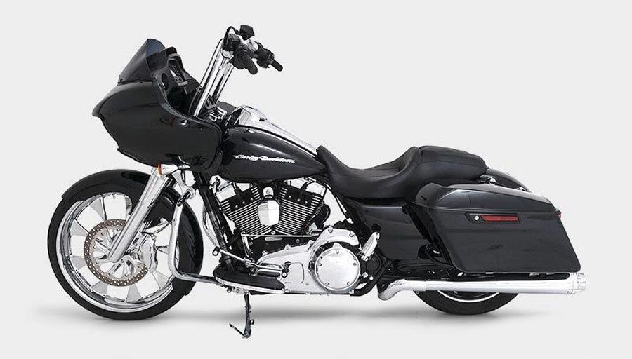 Build #38 2015 Road Glide, Daytona Build. HHI 14" Reaper Handlebars, FLR Fender & mounts installed over our HHI/Renegade Whistler 23 inch Wheel upgrade Kit. HHI X23 49 mm 6 degree bolt on triple trees. Avon Tire .HHI Bomber Lower Legs, and stunning 13 inch 6 piston caliper with matching HHI / Renegade Floating Brake Rotor