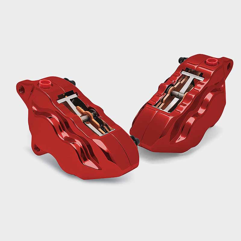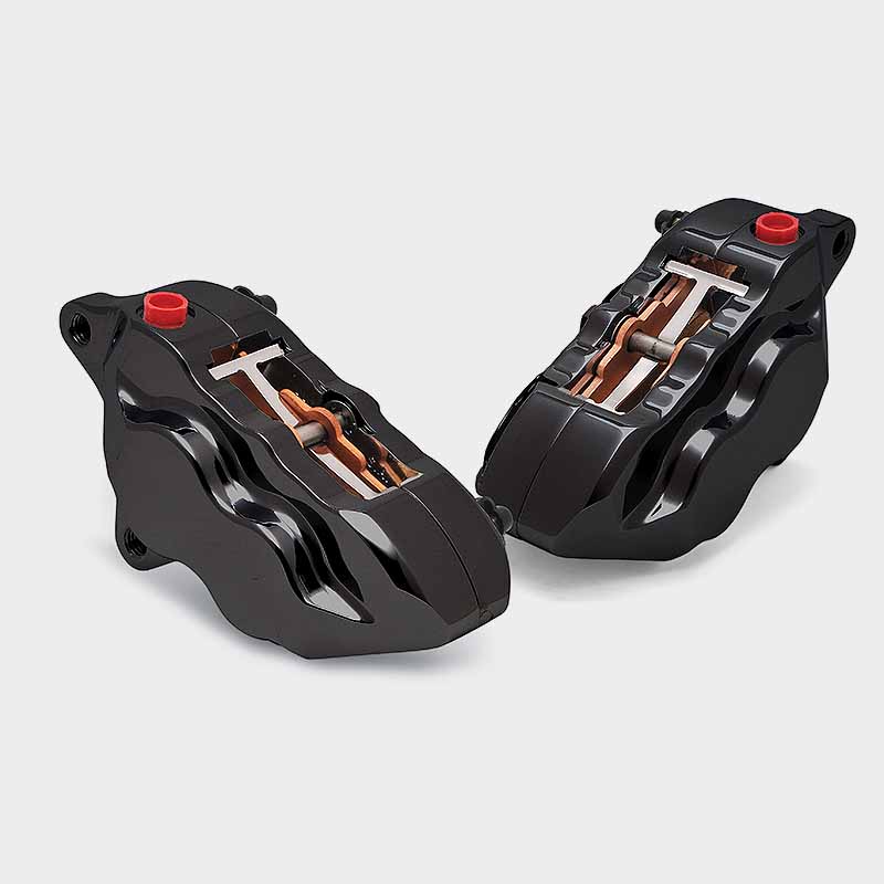 Dual Disc 4 Piston Front Brake Caliper Kit for stock HD Brake Rotor applications.