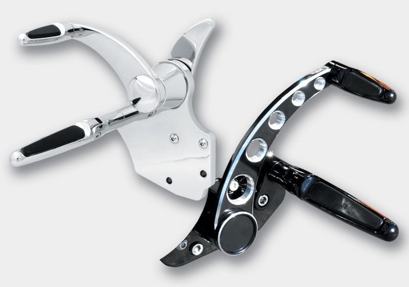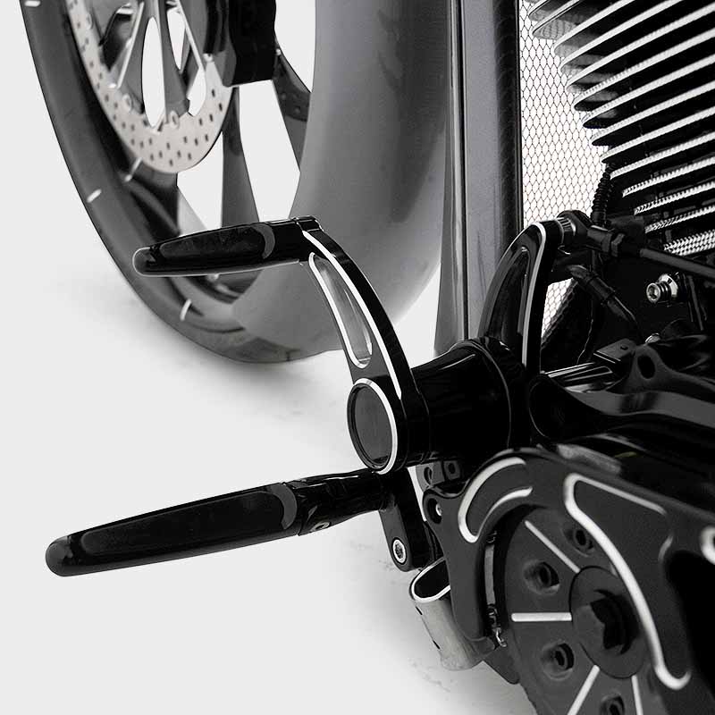 HHI is proud to show off our line of forward controls specifically designed for the Bagger/Touring models. The ever-popular FLH is now getting well-deserved attention in the custom arena thanks to the many avid riders who want something a step above stock. HHI has put its talents to work and now offers FORWARD CONTROLS for the Bagger in both standard and 2 1/2" extended length versions.