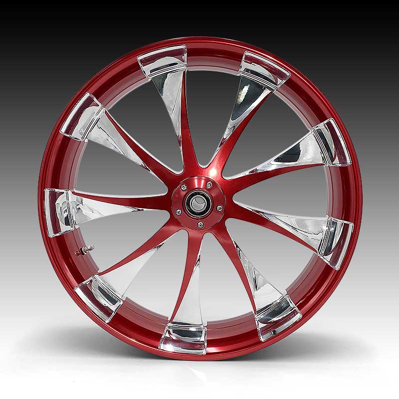 The Lincoln Aztec Red Phantom Cut Billet Wheel.