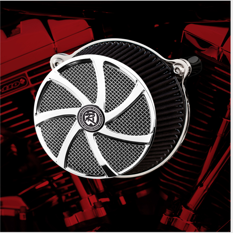 HHI Custom Air Cleaners for Harley Davidson Motorcycles. Renegade and Paul Jr. design to match select Renegade wheels.