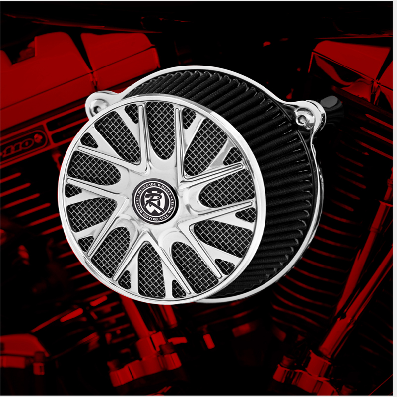HHI Custom Air Cleaners for Harley Davidson Motorcycles. Renegade and Paul Jr. design to match select Renegade wheels.