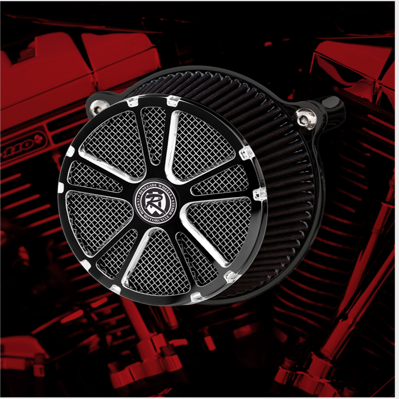 HHI Custom Air Cleaners for Harley Davidson Motorcycles. Renegade and Paul Jr. design to match select Renegade wheels.