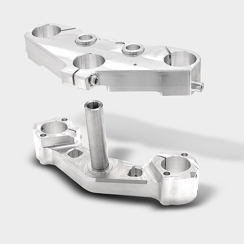 HD Touring model triple trees for 2024-up FL models with 49mm forks.  Works with HHI weld-on neck kit. Choose finish, rake, and extension length options below.