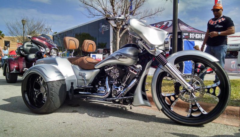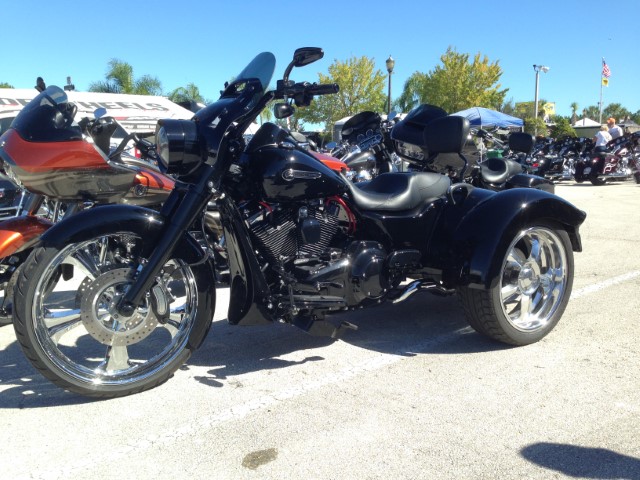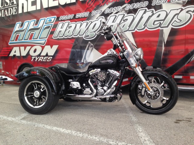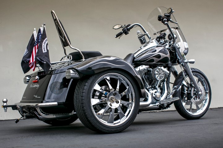 HHI now offers these stunning HHI / Renegade Custom one-piece billet rear HD Trike wheels. These are manufactured in an 18x7 inch size to fit a 215/45-18 tire. These wheels are available in Chrome, Black or Phantom cut standard finishes.  All of our wheel styles are available to fit a variety of Trike applications including the H-D Tri-glide and Freewheeler, Hannigan, Motor Trike and Roadsmith trikes.