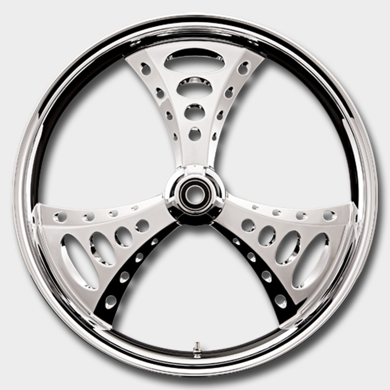 The Trinity is from the part of the Paul Jr. Design series. It boast a stunning 3 spoke design. It is a premium design and includes matching air cleaner, rotors and pulley. Please call for availability before ordering.