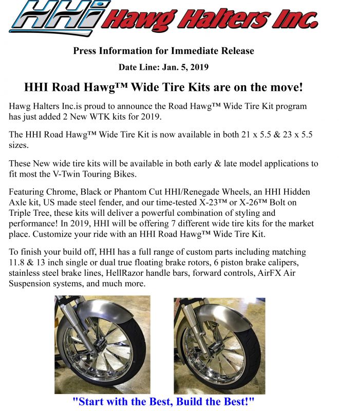 New for 2016 are our enhanced Bike build kits complete with Renegade Wheels, Avon Tires, a full range of Triple Tree conversion Kits including our highly successful X-23 Bolt On Kit for 23 inch wheels, and a full range of Neck & Triple Tree kits from 23 inch to 32 inch installations.