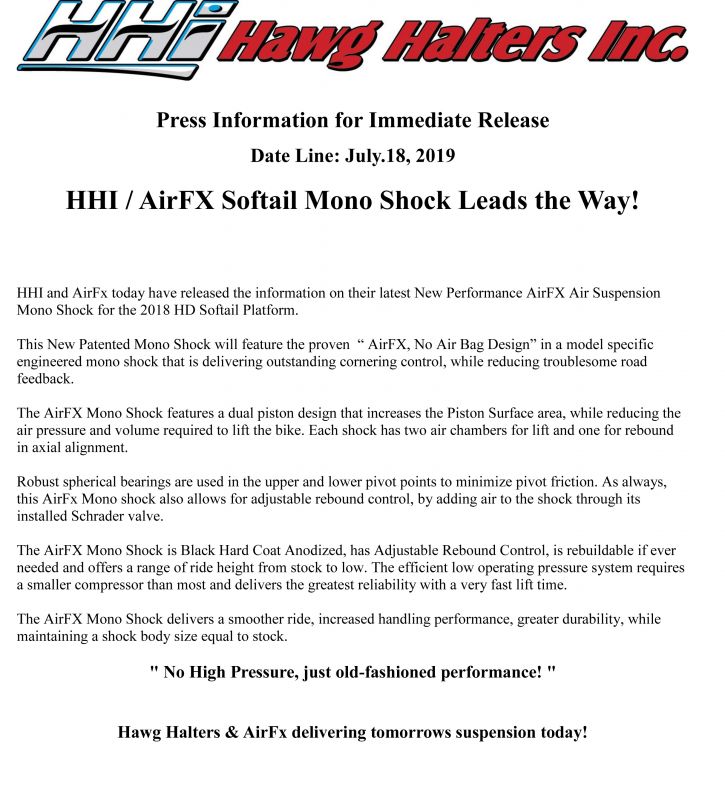Hawg Halters Inc. continues to lead the way in Big Wheel Conversion Kits with the launch of their New Custom Softail Neck Rake Builders Kit.