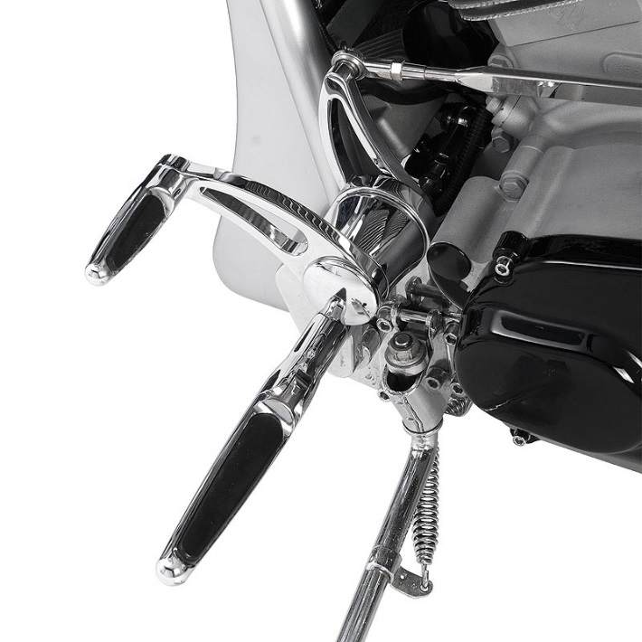 Available in Black, Chrome and Phantom Cut these classically designed controls come in both standard and extended versions with an assortment of optional foot pegs and designs. Mechanically the HHI Forward controls feature the clean technical design you expect from the Dahlonega, Georgia based company and they incorporate such features as dual sealed ball bearings which provide a smooth positive actuation for many miles of safe riding.